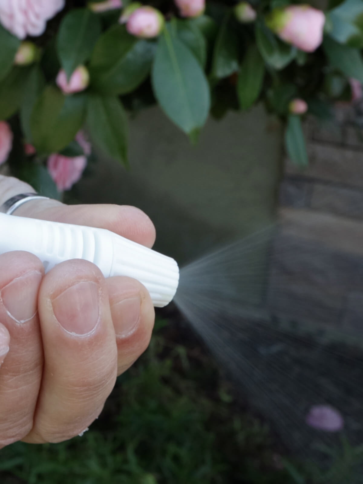 Adjust the sprayer nozzle to either a stream or mist setting.