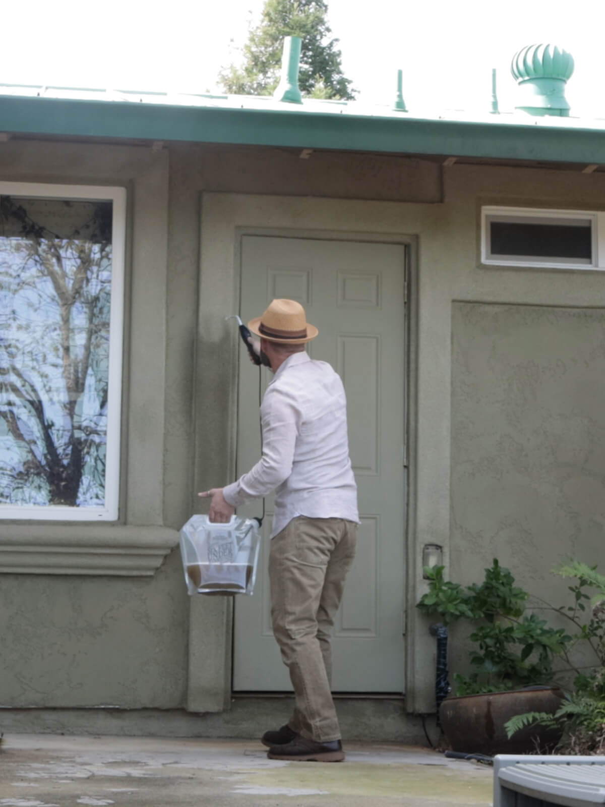 Before and periodically during application, shake the bag thoroughly to evenly mix the ingredients. Apply the product around the perimeter of your home and other structures. Maintain a consistent and even spray pattern to ensure thorough coverage. See below for additional treatment areas.